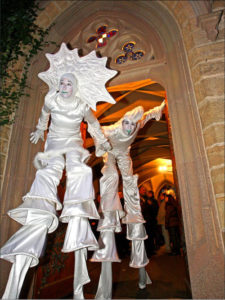 Auf Stelzen überraschen „Die Fuhls“ durch ihr Spiel mit den Zuschauern. Sie agieren ohne Sprache, dafür mit eindeutigen Gesten und Handlungen: Was oder wer da ist, wird unaufdringlich mit einbezogen und so wird ein Platz mit seinen Menschen zum Bühnenbild. Die beiden improvisieren miteinander und mit dem Publikum, ruhen sich zwischendurch mal auf einer Schulter aus, heben Kinder in die Luft und haben einen feinen Sinn dafür, den Moment zu nutzen.