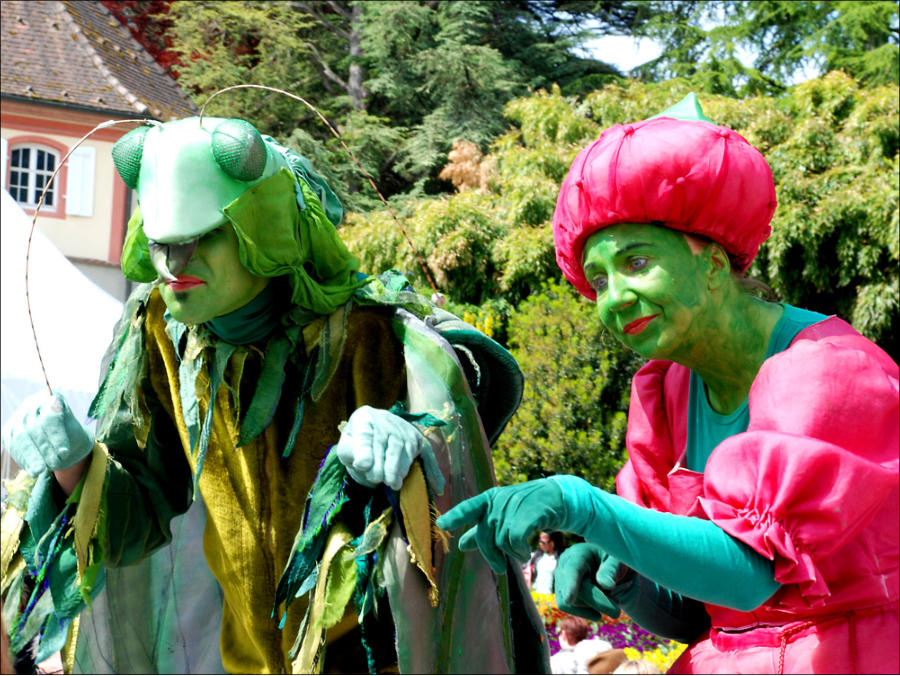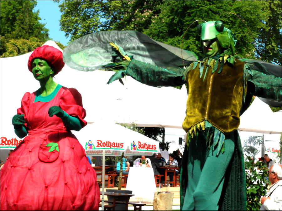Eine knallrote, dicke Erdbeere und ein neugieriger Grashüpfer entdecken die Menschenwelt. Ein ungleiches und auf ihre besondere Weise, harmonisches Paar, dass aus Alice im Wunderland stammen könnte, dass voller Einfallsreichtum und Verwunderung mit den Zuschauern spielt.